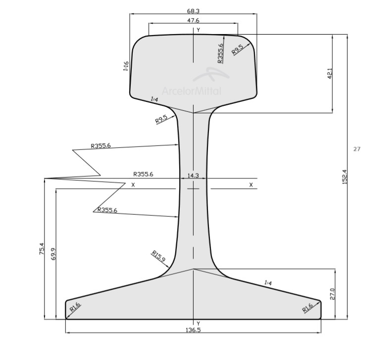 | 100RE | AREMA | 152,40 | 136,50 | 68,30 | 42,10 | 14,30 | 64,19 | 50,35 |