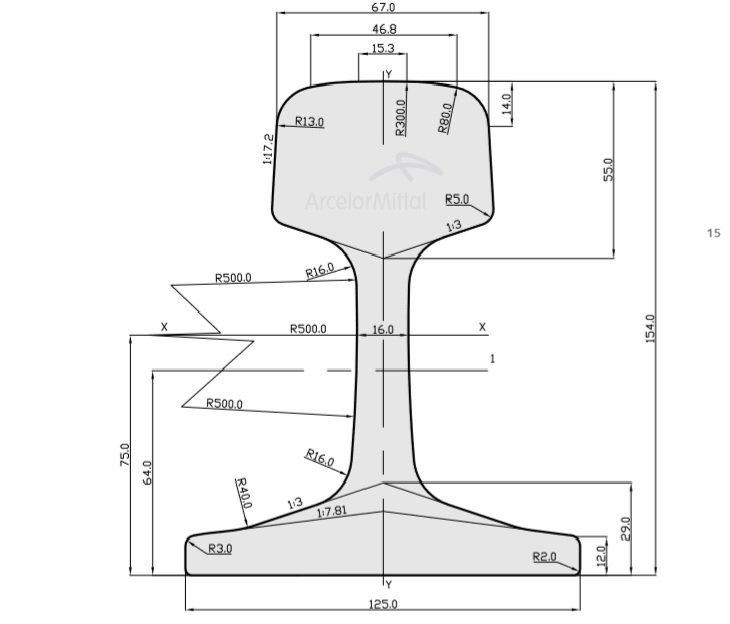 | 54E3 (S54) | EN 13674 – 1 | 154,00 | 125,00 | 67,00 | 55,00 | 16,00 | 69,52 | 54,57 |