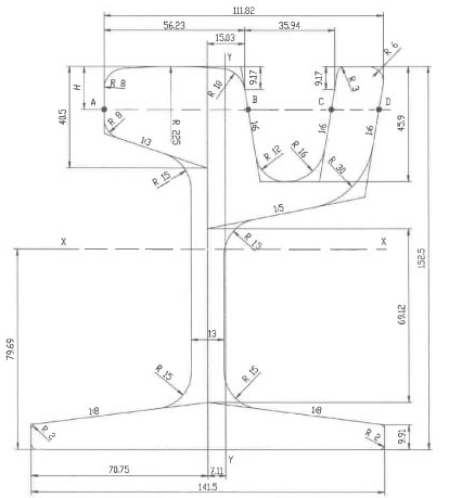 Perfil del carril 55G1 (35GP):
