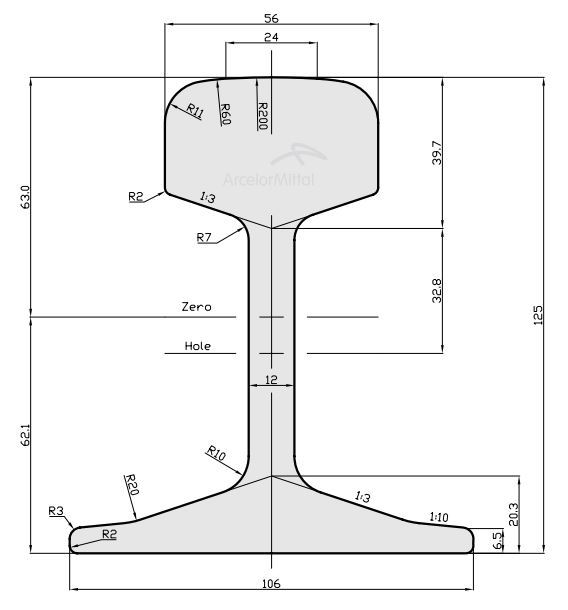 Rail modelo S31 fabricado según la norma europea EN-13674-4; con una masa de 31,57kg por metro.