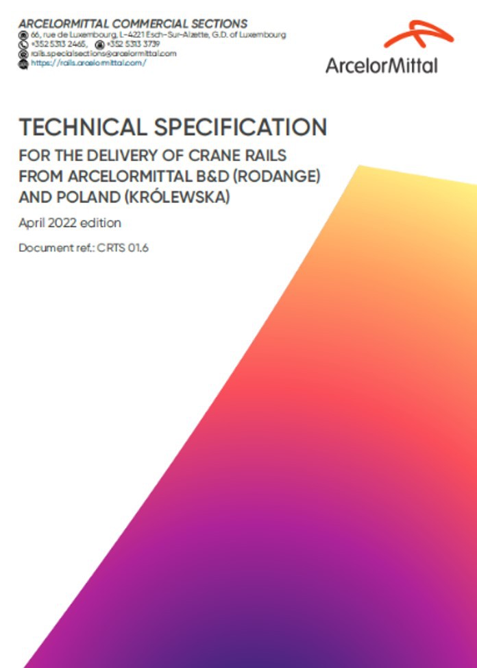 ArcelorMittal Rails & Special sections has launched a new release of “TECHNICAL SPECIFICATION FOR THE DELIVERY OF CRANE RAILS FROM ARCELORMITTAL B&D (RODANGE) AND POLAND (KRÓLEWSKA)”. This version (April edition, ref. CRTS01.6) covers full specifications for the manufacturing and delivering of crane rails in Rodange and Królewska mills.