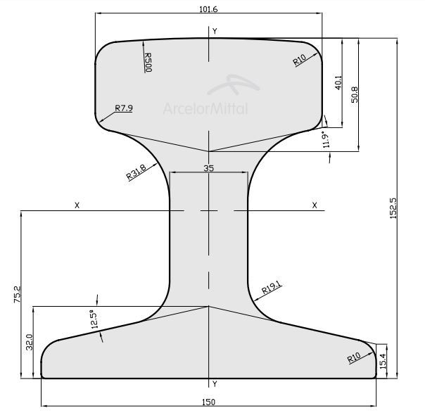 ​​Crane rail AS86  with mass of 85,88  kg/m.