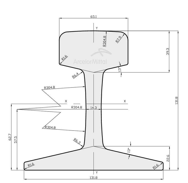 Rail ASCE 85 manufactured according American standard ASCE, mass 42,15 kg per meter.