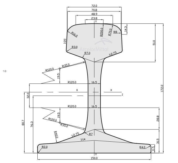 | 60E2 | EN 13674 – 1 | 172,00 | 150,00 | 72,00 | 51,00 | 16,50 | 76,48 | 60,03 |