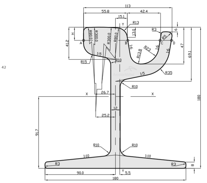 Rail profile 59R2 (Ri59N) manufacture according European Standard EN 14811, within G or R tolerance group manufacturing categories. These group categories are involved in measuring rail verticality which becomes of importance for adjusting track width, embedding material interaction and to have best rail/wheel contact performance.