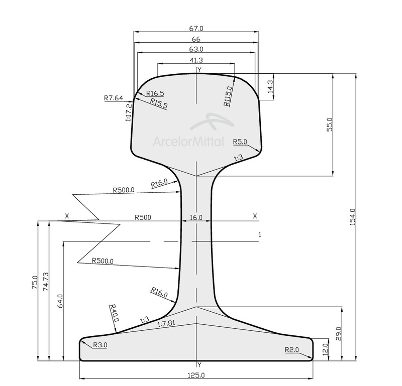 Rail profile 54E4 manufactured according European Standard EN 13674-1, mass 54,31 kg per meter.