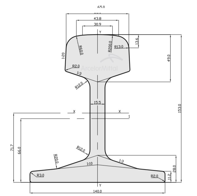 | 50E6 (U50) | EN 13674 – 1 | 153,00 | 140,00 | 65,00 | 49,00 | 15,50 | 64,89 | 50,90 |